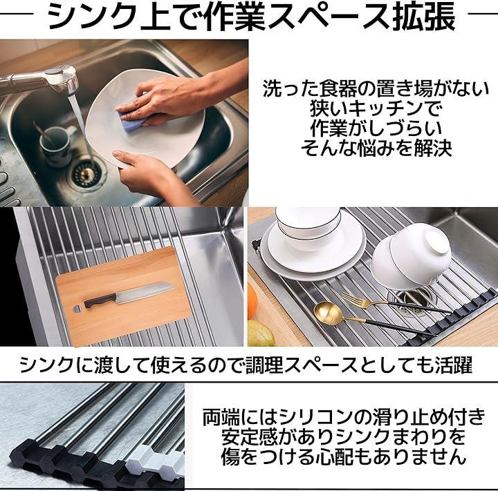 両端にはシリコンの滑り止め付きで、安定感があり、シンクまわりに傷をつける心配もありません。