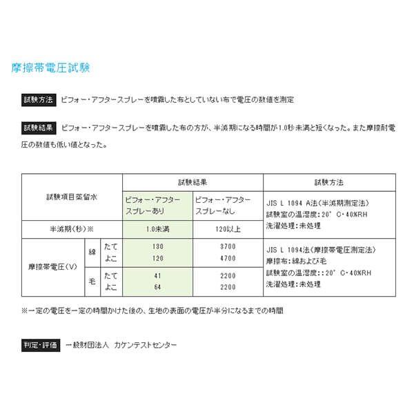 ◆新たに行った摩擦帯電圧試験とウイルス試験により、BeforeAfterスプレーで下記の効果が期待できることが証明されました。