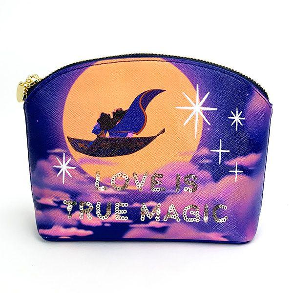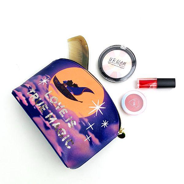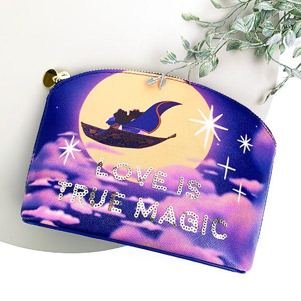 ロマンティックな二人の情景に印象的なワードの刺繍が入ったポーチです♪プリント面は凹凸のあるエンボス加工、背面は本革のような、とてもなめらかな手触りです。◆サイズ:14cm×20cm×6.5cm