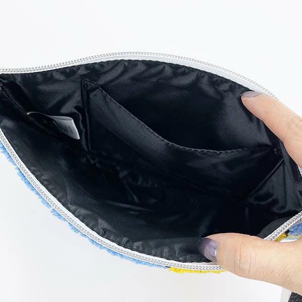 サガラ刺繍でディズニーのキャラクター達をデザイン♪必要な小物類が全部入ってしまう大きさ。一本の糸をかぎ状の針ですくいあげながら縫う手法。毛糸をつかったふわふわとした感触の高級な立体感のある刺繍がおすすめです。