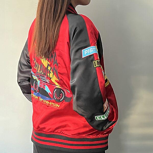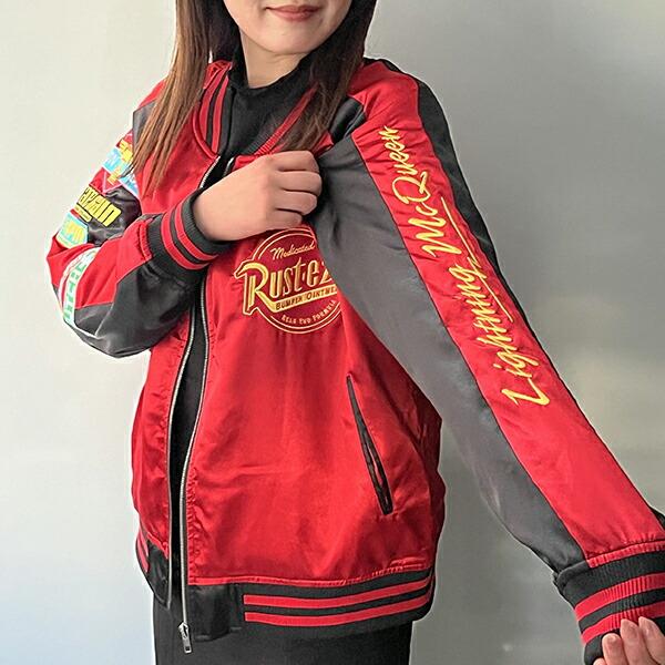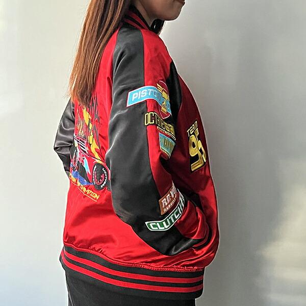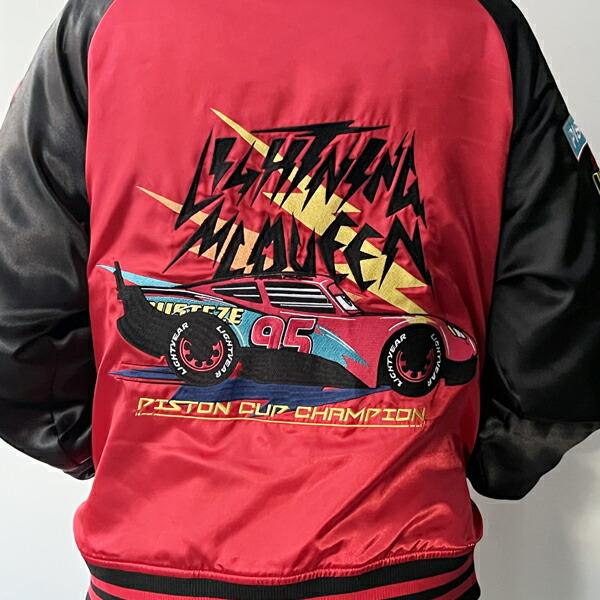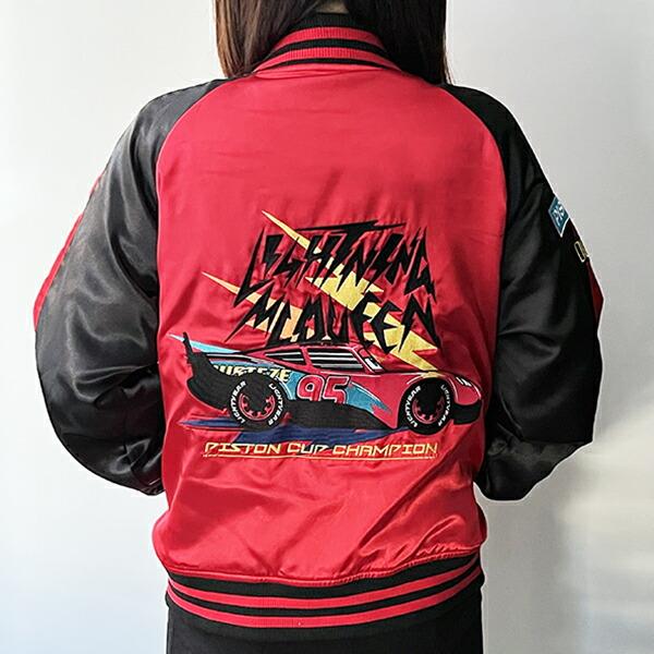 サテンの光沢ある生地で格好よく。バッグに大きくキャラクター刺繍されたスカジャンです。袖の部分や胸にもワンポイントが入っています。可愛くもカッコよくもコーデできちゃうアイテムです♪普段使いはもちろん、テーマパークにも!Lサイズですが、女性はダボっと着るのもおすすめ♪ 【チェスト:96~104cm 身長:170~185cm】【モデル身長:165?】