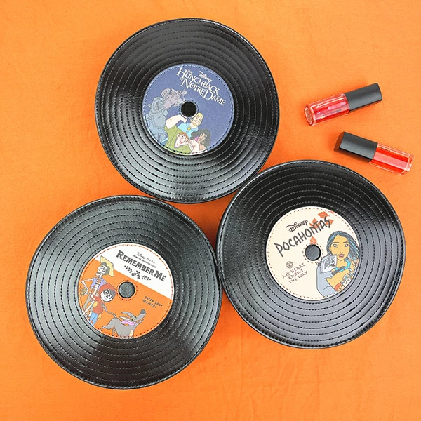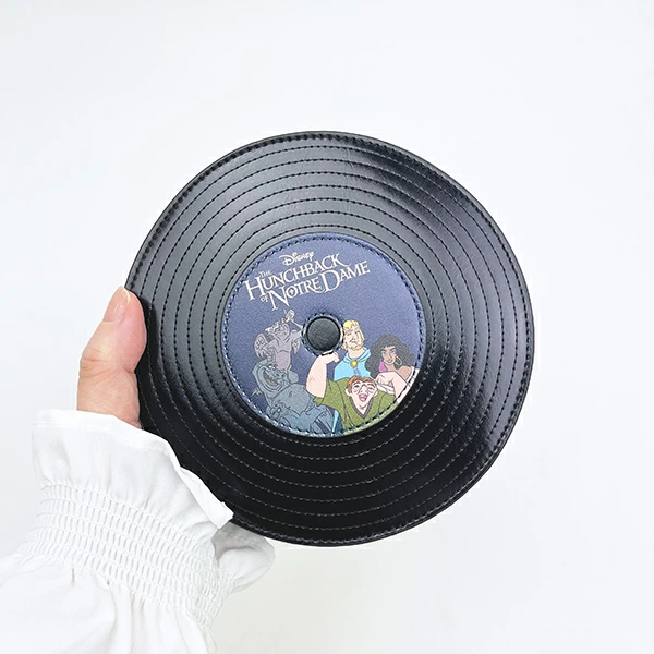 ディズニーのクラシックレコードポーチです。DISNEY作品の音楽からインスピレーションを受け、レコード型に落とし込んだシリーズ☆今にも音楽が聞こえてきそうなリアルさがgood??マチが付いているので収納力も抜群!コスメはもちろん、小さめのお財布やモバイルバッテリー等、必需品の持ち運びにも便利なサイズ感です??お持ちのショルダー紐を取り付けると、バッグとしての使用も可能です☆彡