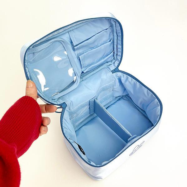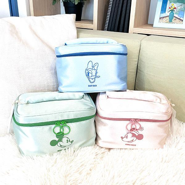キラキラとした生地感がかわいいディズニーのバニティポーチ。大容量なので、旅行やお泊まりはもちろんお家でのコスメの整理にも使える便利なアイテムです。ブラシもしっかり収納できる専用ポケット付き。可動式の仕切りもあるので、お手持ちのアイテムに併せてカスタマイズができます。