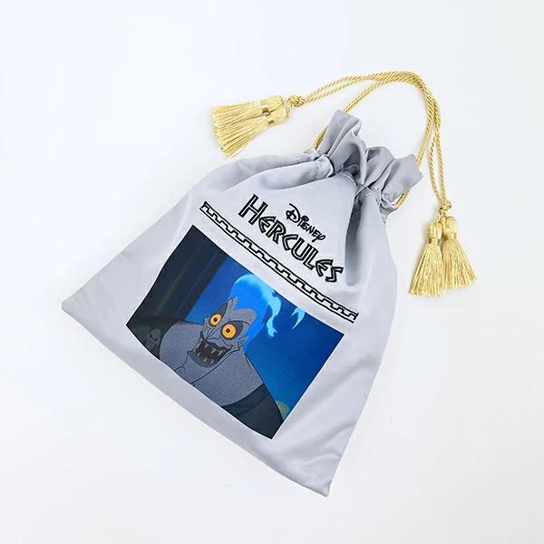 映画のワンシーンからピックアップしたアートを使用し、ヘラクレスの世界観たっぷりな巾着です。光沢のある生地とゴールドのタッセルを使用することで高級感◎裏地付きなのも嬉しいポイント★コスメやトラベルグッズなど、小物をまとめて収納するのに便利なサイズ感◎