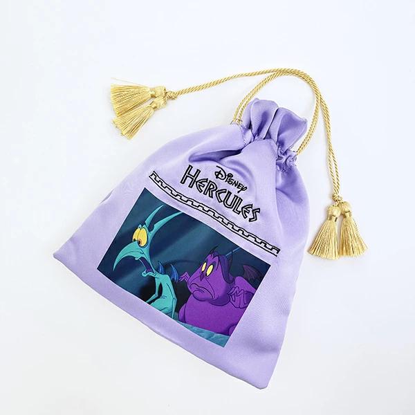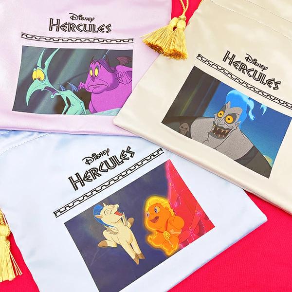 映画のワンシーンからピックアップしたアートを使用し、ヘラクレスの世界観たっぷりな巾着です。光沢のある生地とゴールドのタッセルを使用することで高級感◎裏地付きなのも嬉しいポイント★コスメやトラベルグッズなど、小物をまとめて収納するのに便利なサイズ感◎