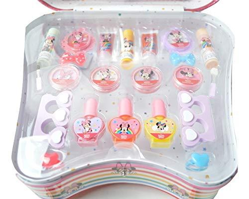 3営業日以内に発送≪新品未開封品≫ミニーちゃんのメイクアップセットです。 このメイクセットでかわいいプリンセスに変身! 両面にミニーマウスがプリントされたバッグにメイク用品がたくさん♪ 女の子のあこがれのメイクセットです。 ネイル、フェイスパウダー(アイシャドー)、リップグロス、 リップスティックなど盛りだくさんのセット♪ フタの裏側には、ブラシ、チップ、リップブラシはもちろん ハンドミラーやコームも入っています♪ ヘアクリップも付いているので、メイクだけでなく おしゃれも楽しめます! このセットだけでいろいろなメイクやネイルが楽しめます。 ママの化粧品をいたずらされることもなくなりそうですね。 バッグ型なので、お出かけにも持っていけちゃいます。 マニキュアはお水で落とせます。 大人用のマニキュアとはちがい、除光液を使わなくていいので お子様でも安心です。 ■セット内容 フェイスパウダー 4個 リップスティック 3個 リップグロス 2個 ジェリーリップグロス 2個 ネイルポリッシュ 3個 アイシャドウチップ 2個 アイシャドウブラシ 1個 リップブラシ 1個 ハンドミラー 1個 くし 1個 爪やすり 1個 チークブラシ 1個 ヘアクリップ 2個 トゥセパレーター 2個 ■サイズ(約) ケース 高さ24×幅27×奥行き12cm ■対象年齢 7歳以上 正規ライセンス商品です。 ※輸入品につき、多少のスレ・小キズ・製造時についたと思われる印・糸の未始末などがある場合がございます。 申し訳ございませんが、上記理由での返品・お取替えはできませんのであらかじめご了承ください