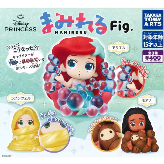 いろいろなものにまみれているタカラトミーアーツオリジナルの「まみれるFig.」シリーズに、ディズニープリンセスが仲間入り。「アリエル」は泡、「ラプンツェル」は髪、「モアナ」はココナッツにまみれています。