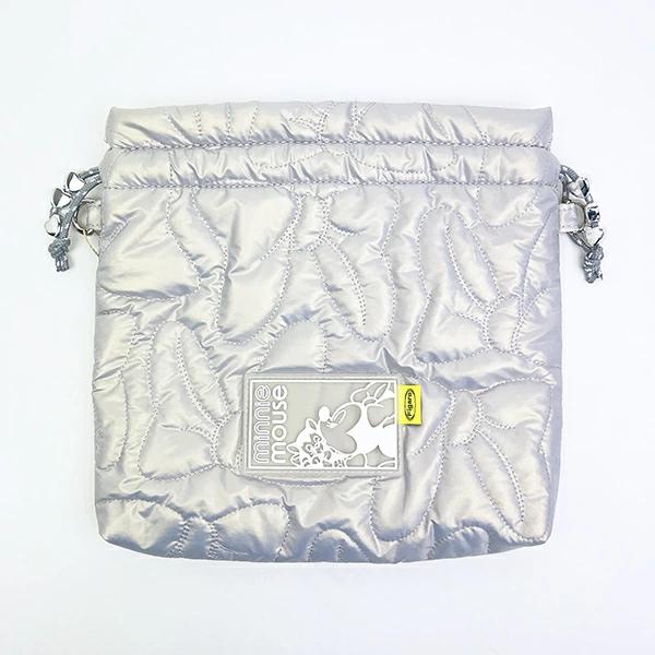 ミニーマウスのリボン型のキルティング生地がポイントの巾着型ポーチです。同色でステッチを施すことで、大人でも持ちやすい総柄デザインに♪お手持ちのショルダー紐を取り付けると、巾着バッグとしての使用も可能◎少しマチが付いているので、収納力も抜群♪デジカメや、小さめのお財布やポーチなども入るサイズ感がgoodです♪