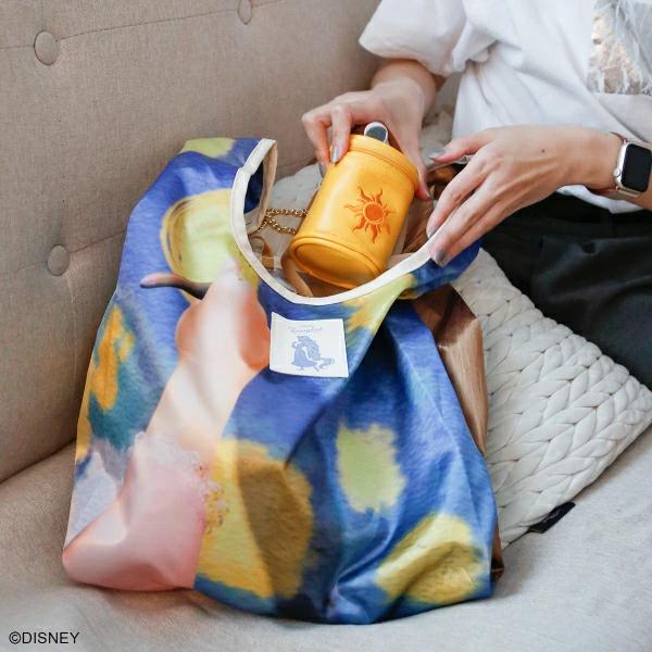 ラプンツェルの描いた絵を柄のように用いたアートなマルシェバッグです。『塔の上のラプンツェル』内での、外の世界に焦がれるラプンツェルがランタンのあがる風景を壁に描くシーンをピックアップ。お出かけ時のサブバッグとしてもオシャレにお持ちいただけます◎プンツェルの髪のようなゴールドのリボンでバッグをくるくる巻けばコンパクトに。持ち運びにも便利です。ラプンツェルが描くアートや映画の世界観にフォーカスした、大人な雰囲気のラプンツェルとアコモデ(ACCOMMODE)のコラボシリーズです。