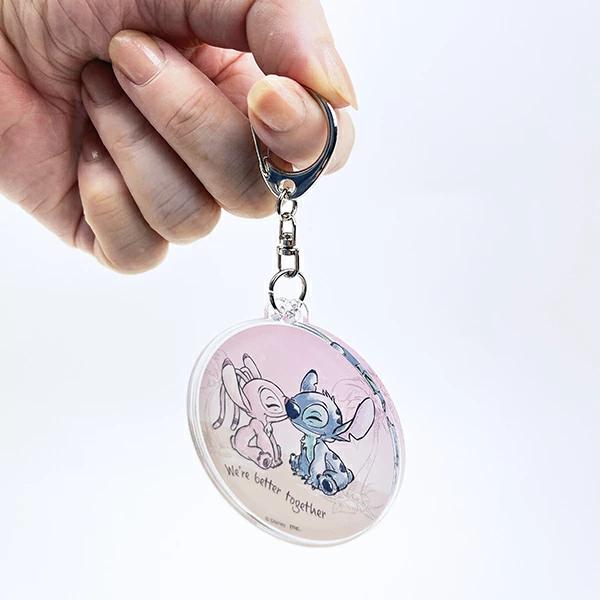 スティッチ&エンジェルのアクリルキーホルダーです♪夏にピッタリ、涼しげな水彩デザイン♪同シリーズのバッグに付けても、とってもキュート☆彡