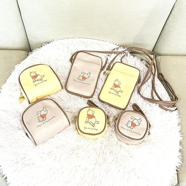 手のひらサイズのミニポーチ♪リップやイヤホン、使う頻度の高い小物の収納におすすめです!ストラップ付きやファスナーがプーさんの大好物☆はちみつデザインもこだわりポイントです。