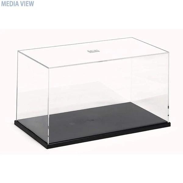1/12スケールのオートバイモデルやワンボックスなど背の高い自動車モデルがピッタリ入る、幅240mm奥行き130mm高さ140mmサイズ。ケースは高い透明性を持たせたスチロール樹脂製、ブラック仕上げの台座はディスプレイケースCと同じサイズで積み重ねやすい形状。