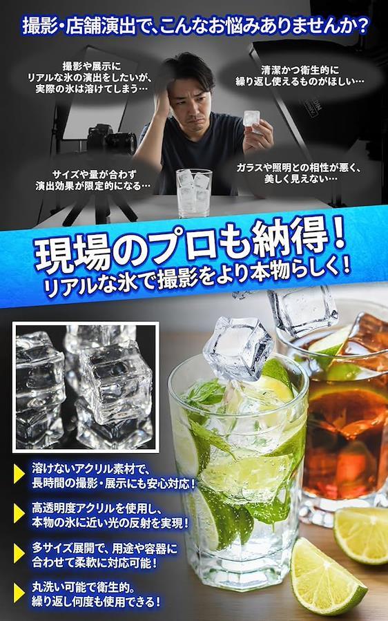 「リアリティを追求」撮影やディスプレイ、食品サンプルに利用できるアクリル製の氷セットとなります。