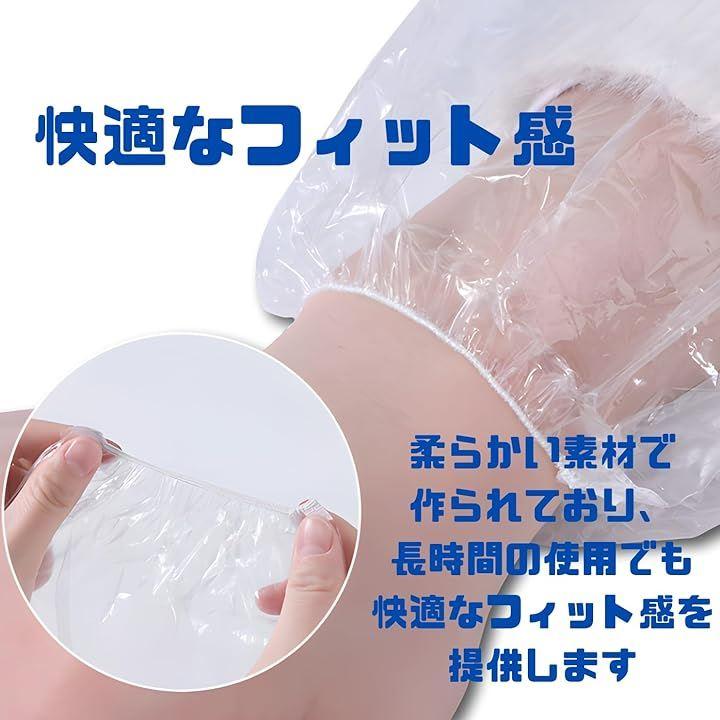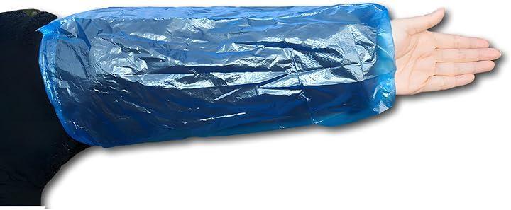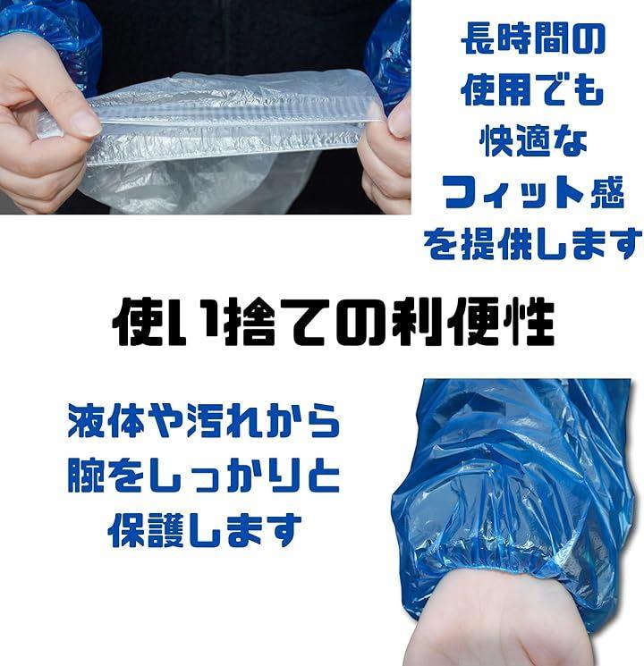 「防水性能」この使い捨てアームカバーは優れた防水性能を持ち、液体や汚れから腕をしっかりと保護します。