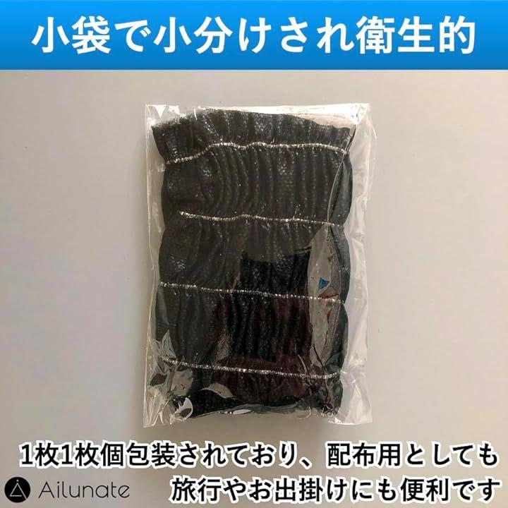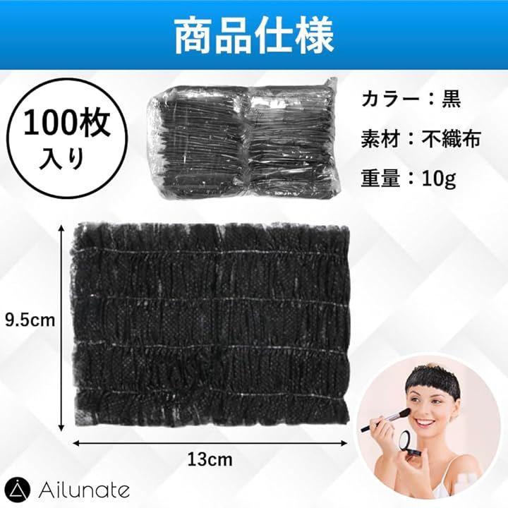 「商品仕様」内容量:100枚、カラー:ブラック、素材:不織布、サイズ:9.5cm x 13cm(フリーサイズ)、重量:10g