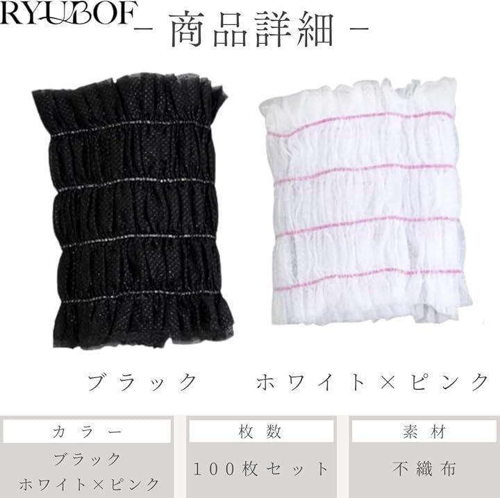 「選べるブラック&ホワイトデザイン」ブラックカラー汚れが目立ちにくく落ち着いた印象で使用可能、おしゃれなホワイトカラー、このヘアキャップは衛生管理と清潔感を両立した定番アイテムです。