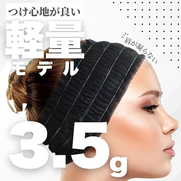 「痛くない伸縮フィット」3倍伸びる伸縮素材で、頭にやさしくフィットし、締め付け感ゼロの快適設計。