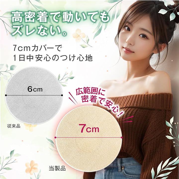“7cmの大きめサイズ”でしっかりカバー 直径7cmの大きめ設計で、胸をふんわり包み込みながらしっかりカバー。