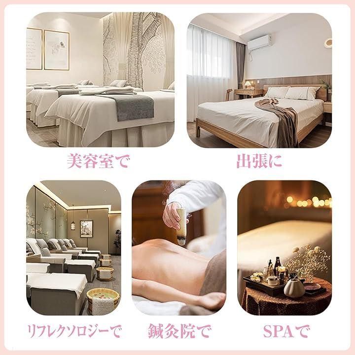 標準サイズのマッサージベッドにフィットするサイズで、さまざまな施術台やサロンのスタイルに対応可能。