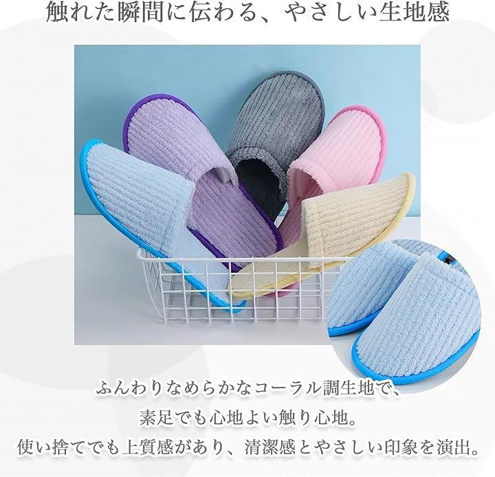 清潔感のある個包装で、使い捨てとしても利用しやすく、来客用・旅館・ホテル・民泊・オフィス・エステ・引っ越し・内装業など幅広いシーンで活躍します。