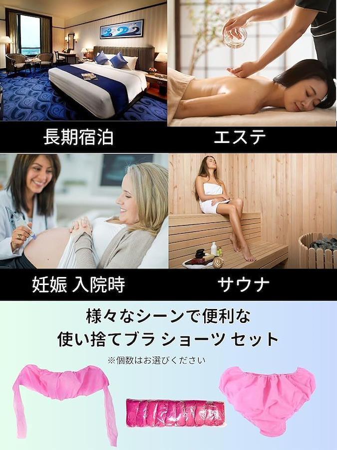 「使いきりタイプ」不織布を使用した使い捨て不織布ブラとショーツのセットです。