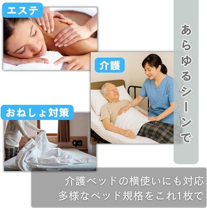 介護ベッドの横使いにも対応し、エステ・ホテル・病院など多様なベッド規格を1枚でカバーします。