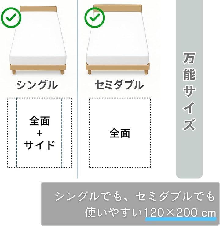 セミダブルベッドでも表面全体をカバー可能なぴったりサイズです。