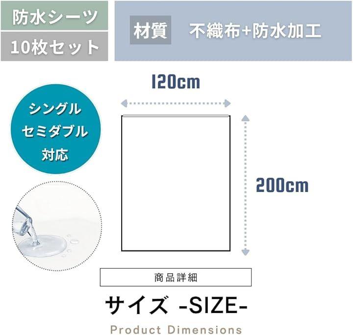 「商品内容」パッケージ内容:使い捨てベッドシーツ10枚セット サイズ(約):幅120cm 全長200cm、素材:不織布+防水加工 *サイズ詳細は商品画像をご確認ください。