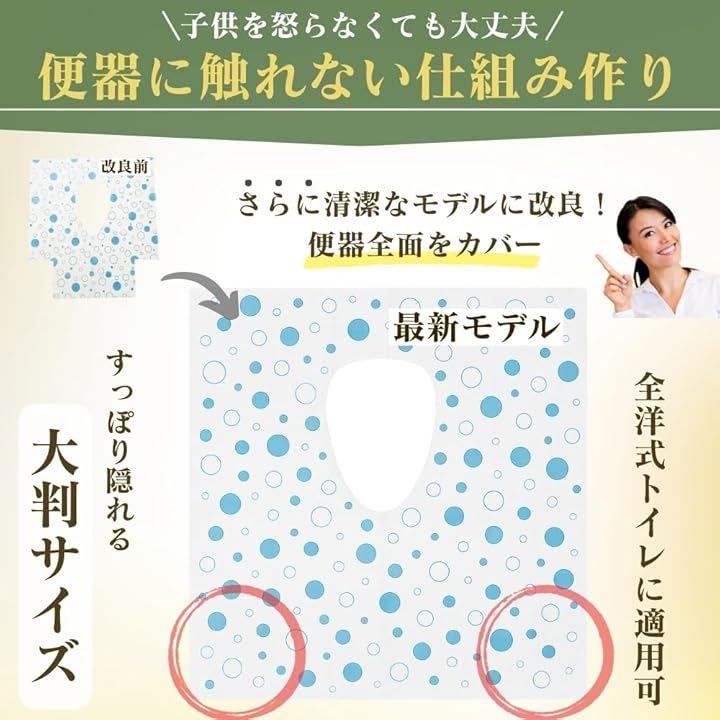 「大判サイズで安心」全体サイズ縦60cmx横64cm、中央穴縦25cmx横16cmの大判設計で、便器全体をしっかり覆い、手や足が直接触れるのを防ぎます。