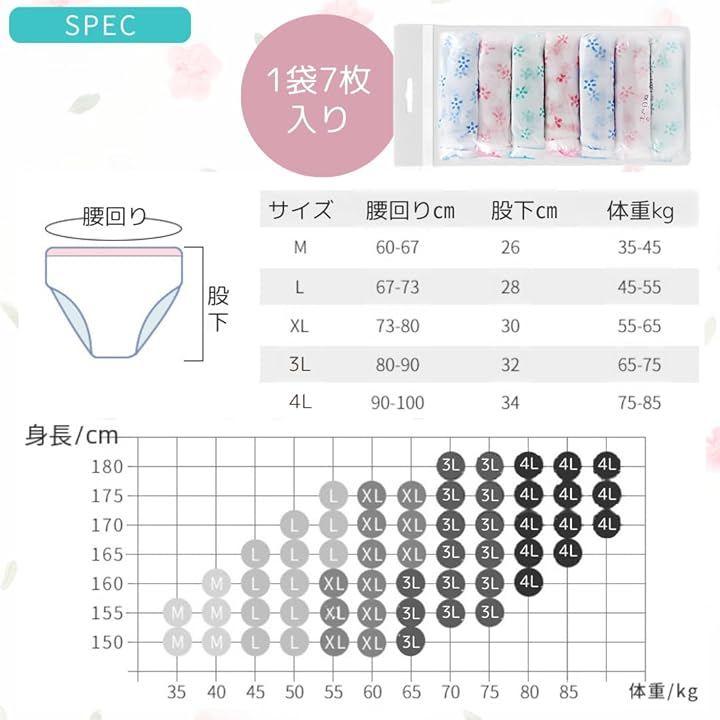 「商品詳細」セット内容:使い捨てショーツ1袋7枚入り サイズ:M~4L