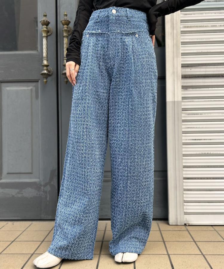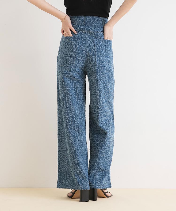 上品さとカジュアルさが融合されたツイード風デニムパンツ。