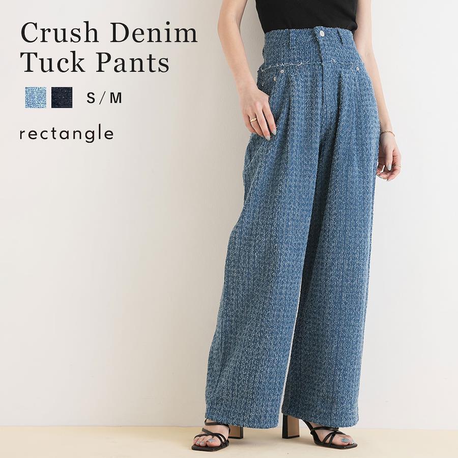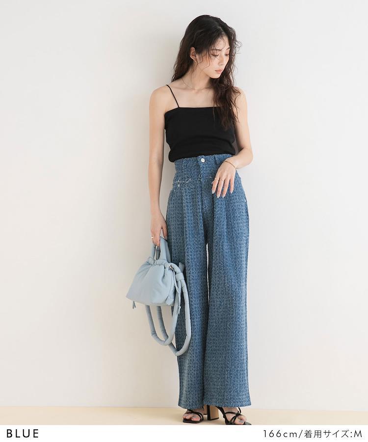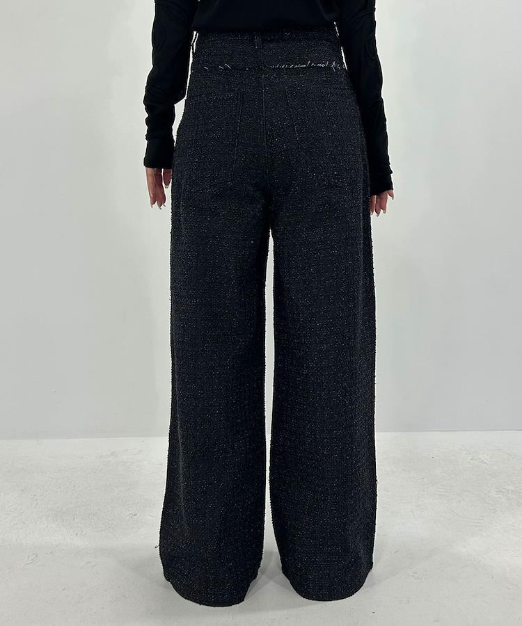 上品さとカジュアルさが融合されたツイード風デニムパンツ。