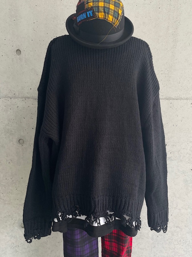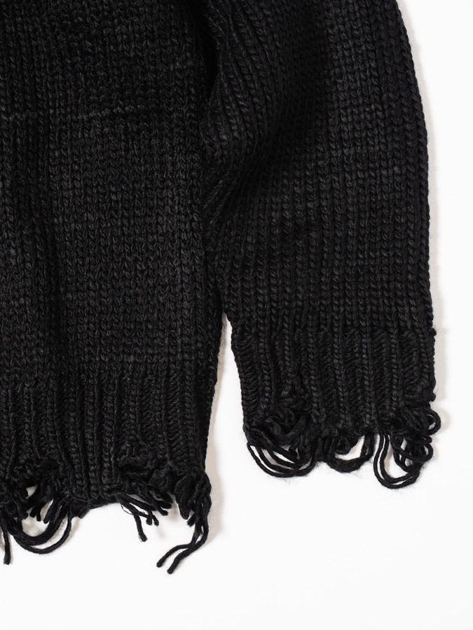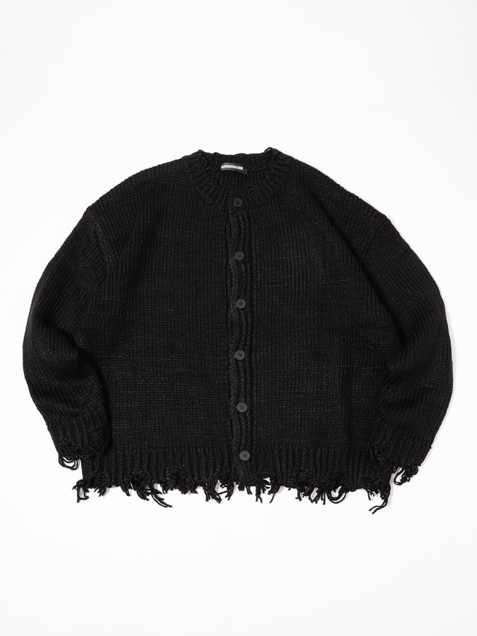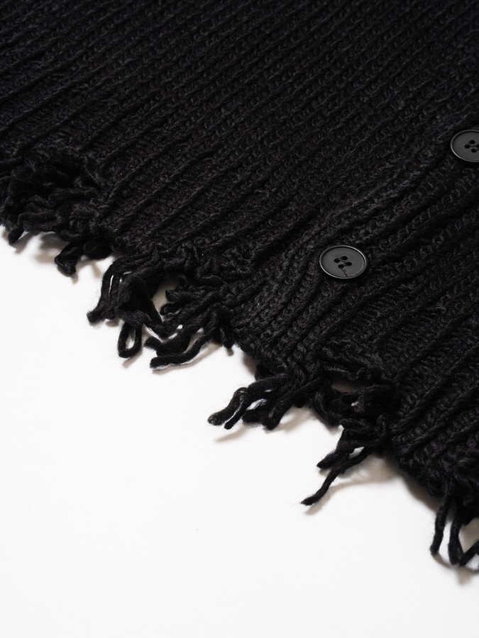 Distressed Knit Cardigan [HELLCATPUNKS] Black, One Size Fits All, Unisex (HRC-KN0002)