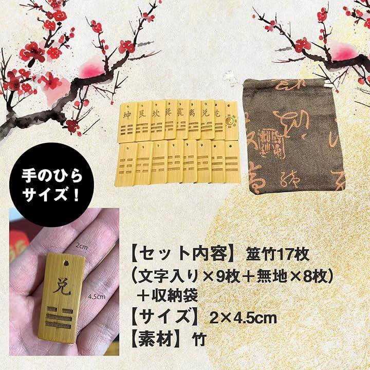 「セット内容」筮竹17枚(文字入りx9枚+無地x8枚)+収納袋「サイズ」2x4.5cm「素材」竹