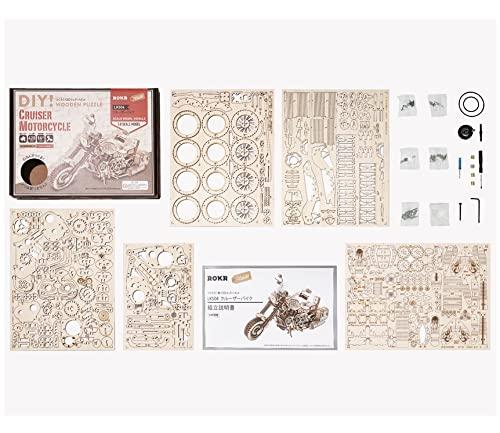通常1-5営業日で発送:世界で人気の3Dパズルが日本語説明書付きで登場! お子様から大人まで楽しめるウッドパズル。 クラシカルなスタイルが魅力のクルーザーバイク。ゼンマイ式なので、実際に走らせることができます!ハンドルと気筒エンジンは可動式で、サイドバックには小物を収納することが可能。メカニックなウッドパズルが好きな方にオススメです!このキットは、カット済みウッドシートとサンドペーパーが入ったオールインワン組み立てキット。 特殊な道具も不要なのでプレゼントにもオススメです!