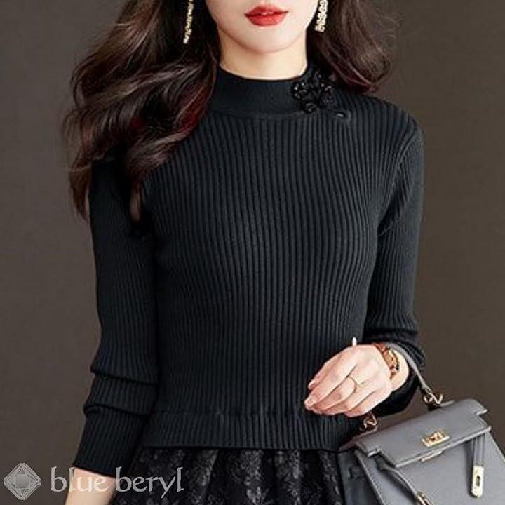 マット感のあるニット素材に、ほのかにきらめくビジューをあしらったチャイナボタンが、艶やかなノスタルジックムードを添えるアクセサリー代わりに。