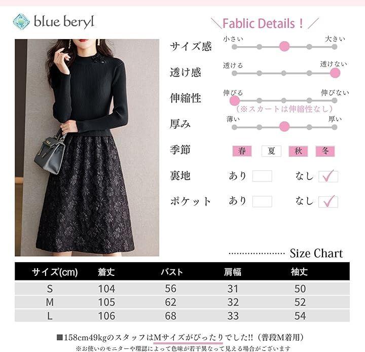 フィット&フレアなシルエットに異素材のコンビネーションで、奥行き感のある華やぎを誘います。