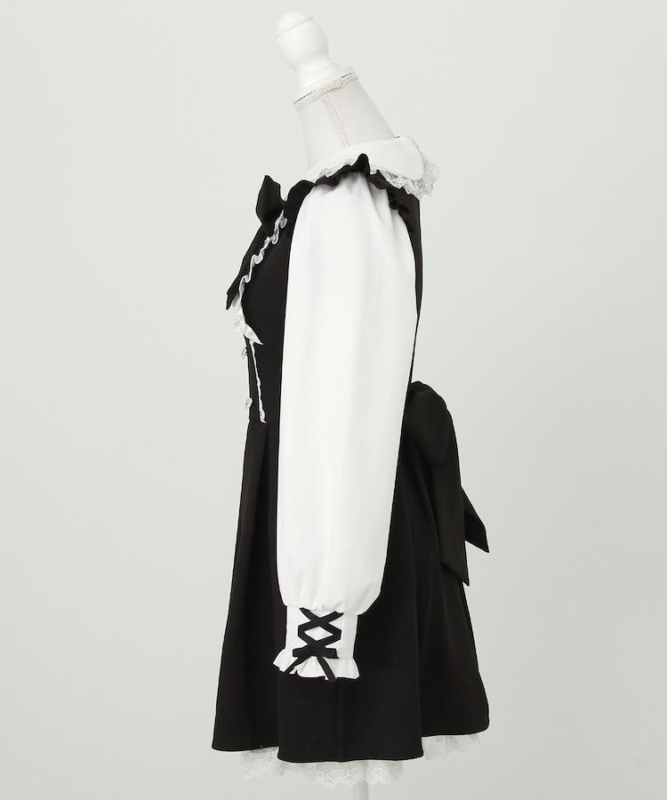 袖口にはレースアップ、襟や裾にはハートレースがあしらわれています。