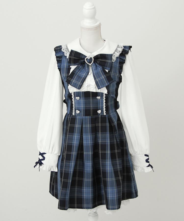 襟元の大きめリボンにはハートパールバックルがポイントになっています。