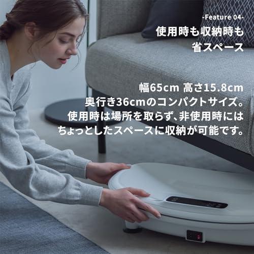 運動したいけど、なかなか続かない方、乗って姿勢をキープするだけで自他で手軽にエクササイズしたい方におすすめです。15段階の振動レベルと3つのモードを搭載(上下振動最大770回/分)、微振動(最大220回/分)MIX振動が選べます。上下振動と微振の2つの機能を搭載。使いから次第で、さまざまな部位に振動を届けることができます。使用時も収納時も省スペース。コンパクトサイズなのでちょっとしたスペースにも収納が可能です。バンド型リモコンでらくらく操作。控えめな振動音でいつでも使いやすくなりました。付属のフロアマットで、振動の伝わり方を軽減。