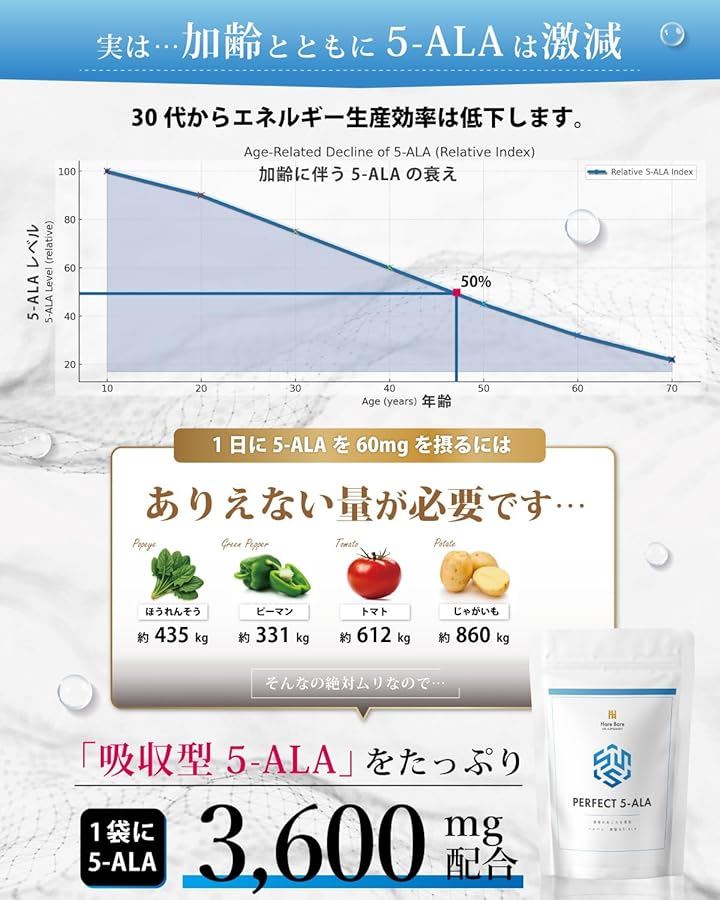 Doctor-supervised, absorbable 5-ALA 60mg (60 tablets) with 5-ALA, NMN, and iron. Harebare, Made in Japan, GMP Certified.
