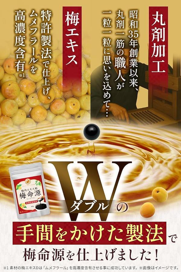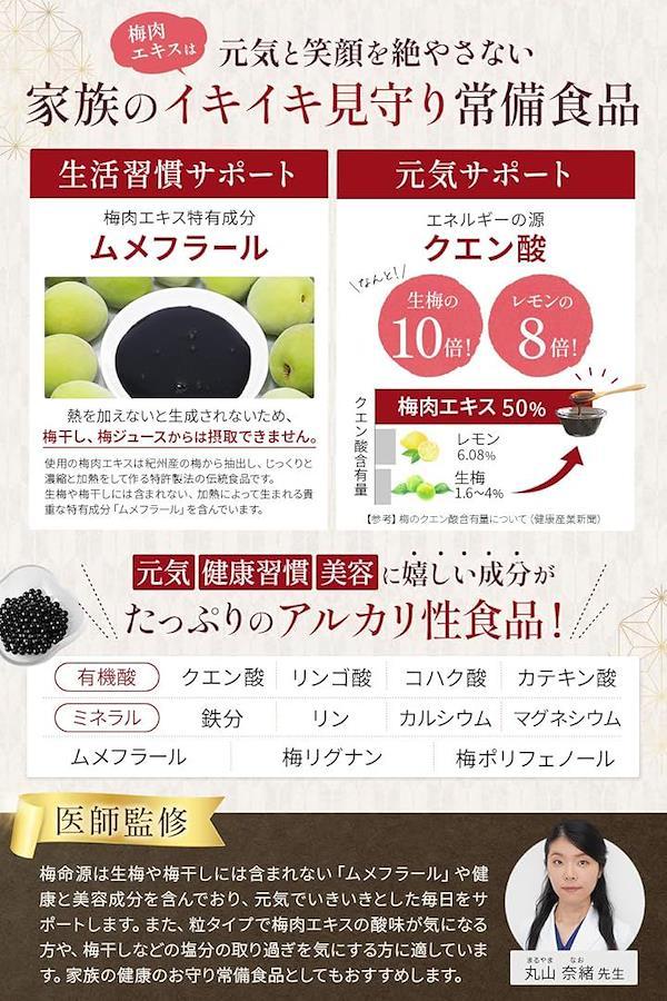 「大切な体をサポート」紀州産梅を使用、梅の特産地紀州和歌山で製造しており、生梅の約10倍のクエン酸、ムメフラール、カルシウム、鉄、リンゴ酸など が含まれています。