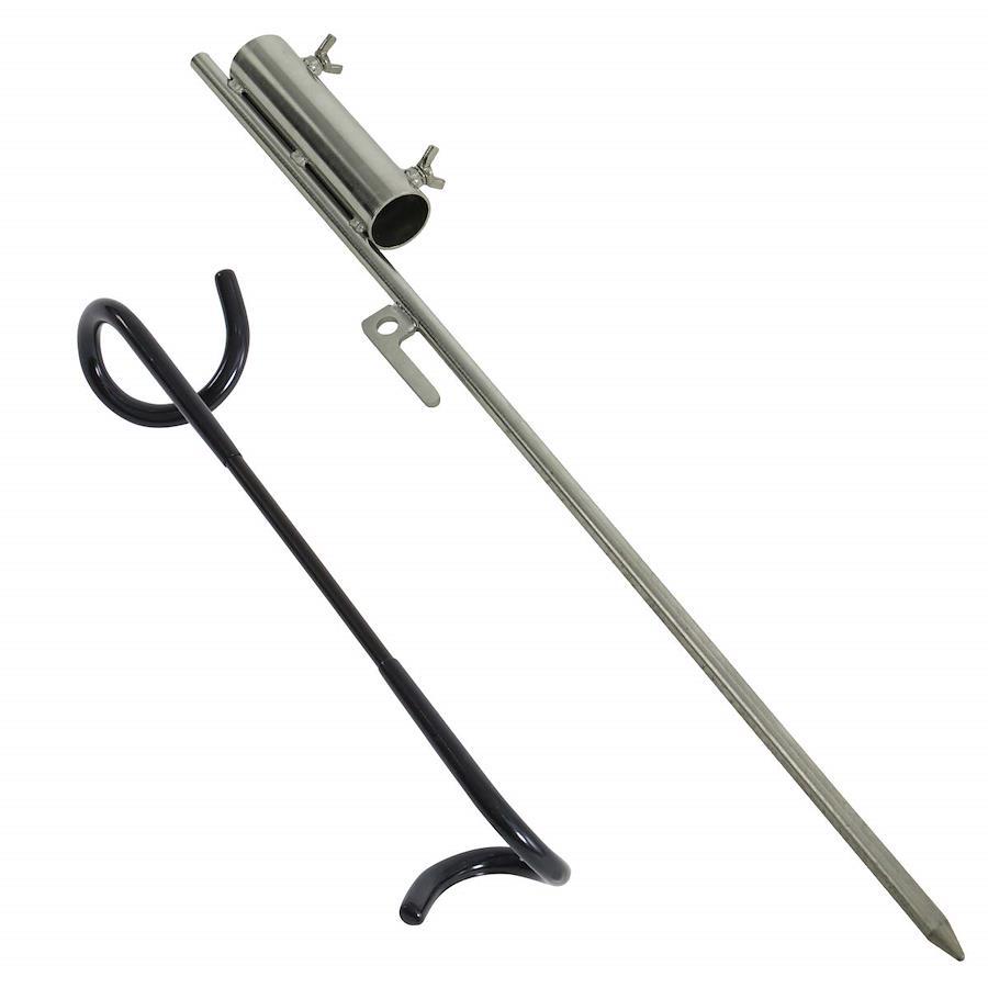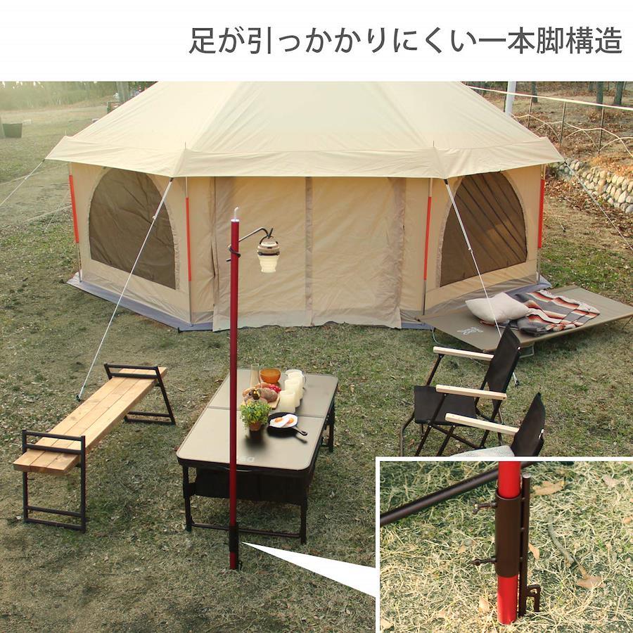 足が引っかりにくい一本脚構造地面に打ち込んで一本脚で自立する構造のため、3本脚などのランタンスタンドと比べて足が引っかかりにくく、テントサイトの見た目もスマートになります。※ポール部分は付属しません。