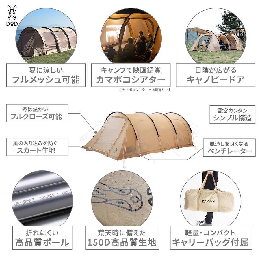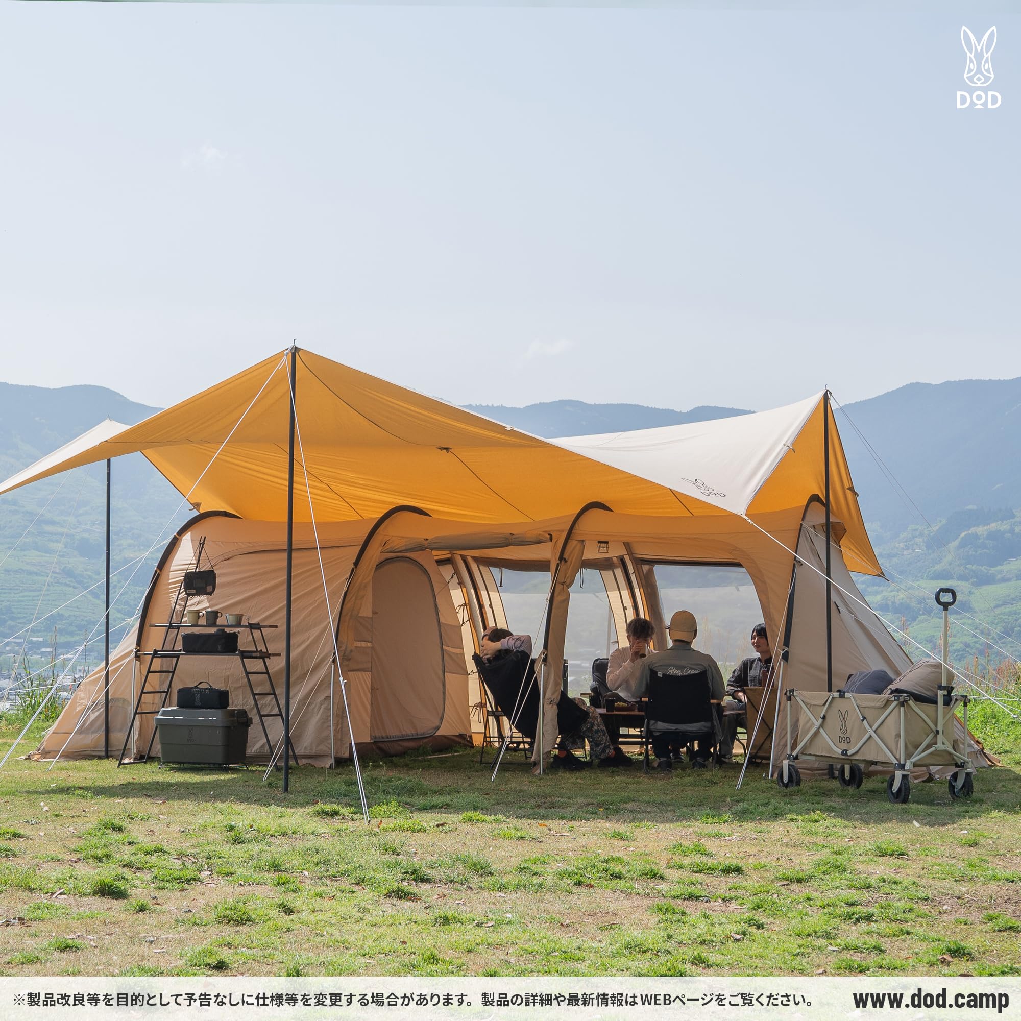 広いリビングを備えた2ルーム型トンネルテント。カマボコテント史上最高の快適性と充実したオプションパーツで、よりワクワクするキャンプを。日本ならではの気候やキャンプサイトの大きさに合わせて設計された、オールシーズン対応の2ルーム型トンネルテントです。コンパクトな収納サイズながら、大人10人がくつろげる程のリビングスペースを備えており、ファミリーキャンプからグループキャンプまで幅広く活躍します。カマボコテント3では構造や素材を見直し、さらに快適に過ごせるように改良を行いました。オプションパーツも充実させることで、よりワクワクする使い方を可能にしています。