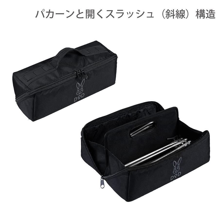 パカーンと開くスラッシュ(斜線)構造ペグを取り出しやすいようにファスナーをパカーンと開けることができます。大きく開くので必要なものがすぐ見つかります。中のモノがゴチャゴチャまざらない2気室設計。