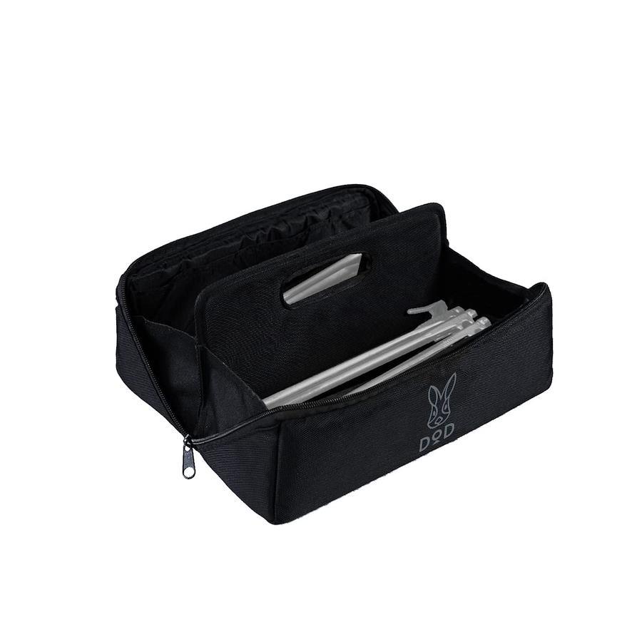 しっかり収納。だけどコンパクト。鍛造ペグ40本、ハンマー2本とガイロープが収納ができる大容量のペグバッグ。カマボコテントのような大型テントや、ドームテント+タープの設営などに必要な道具一式を収容することができます。※ペグは付属しません