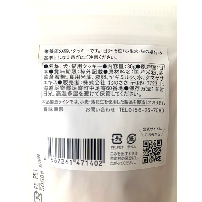 ※本品製造ラインでは、小麦・落花生を使用した製品を製造しております。■与え方栄養価の高いクッキーです。1日3~5粒(小型犬・猫の場合)を基準として与え過ぎにご注意下さい。