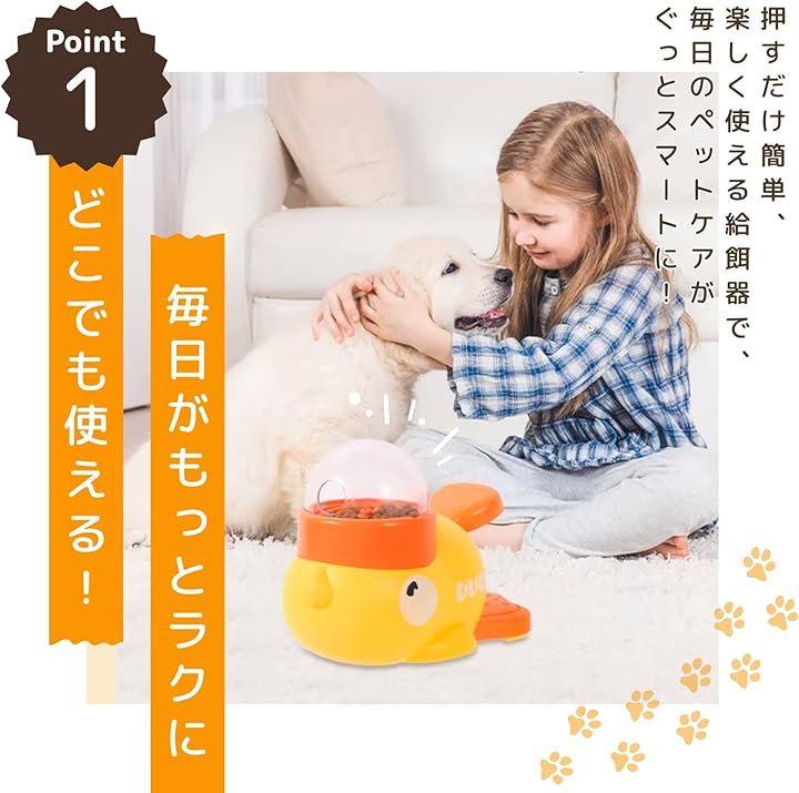 「ワンプッシュで簡単・健康管理」 プッシュボタンでフードの量を調整できるから、与えすぎを防止。