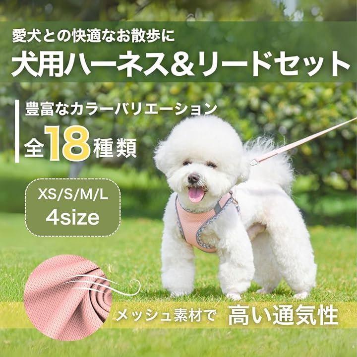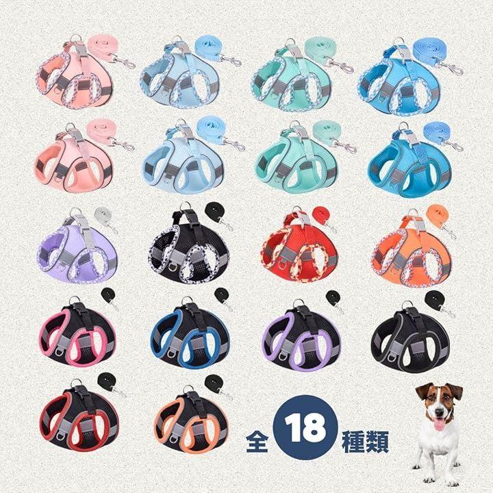 通気性に優れたメッシュ素材を使用した犬用ハーネス&リードセットは、軽量で着け心地もやさしく、暑い季節でも快適にお使いいただけます。