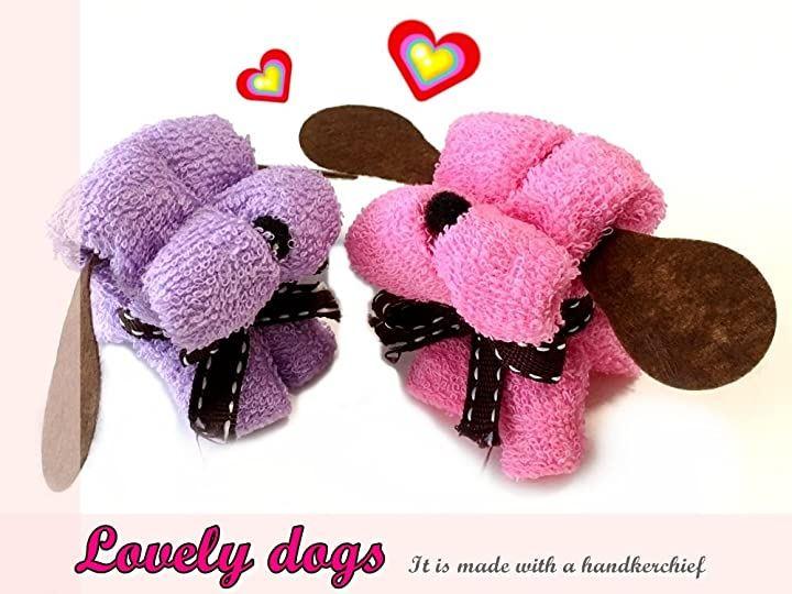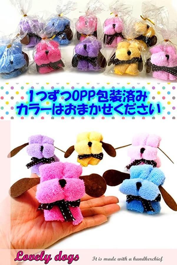 ・かわいい。1枚のハンカチタオルを犬型にして1個ずつOPP包装してお届けします。